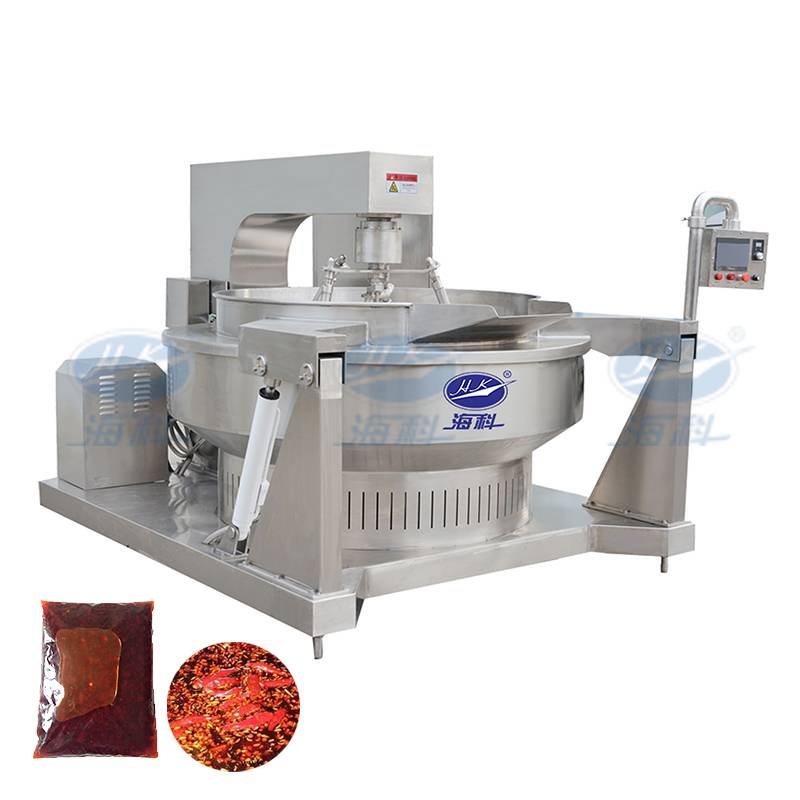 HKRC系列半自动燃气炒锅采用日本先进生产技术,结合用户的生产工艺自主研发的全自动炒制设备。可炒制火锅底料、蔬菜、调味品、馅料、酱料及药材烘焙等。可根据不同生产工艺的要求,对物料重量及温度,搅拌速度、加热时间等精准调整、设定,确保产品质量。锅体采用特殊材料,升温降温快速,保证了物料的口味自然,纯正。